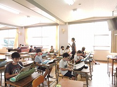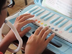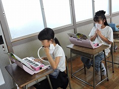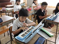 5年生が音楽で鍵盤ハーモニカを吹いていました。パートに分かれながら吹きますが、同時にいくつかの音を出して響きを楽しむ和音を吹きます。まだ吹くことに一生懸命で音の響きを意識することは難しいようですが、友達の出した音に息を合わせて
