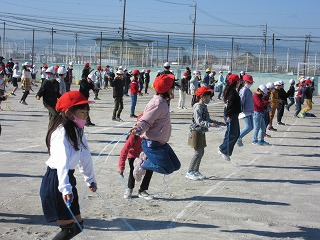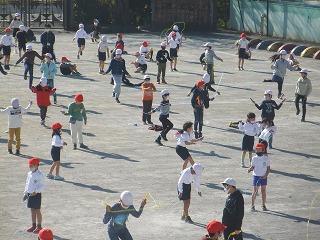 2時間目の放課を長くするように時間を調整して、2週間、全校でなわとびに取り組みます。