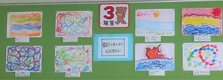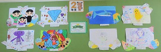 各学年の図工作品が昇降口の靴箱の上に掲示してあります。自分の作品、友達の作品、知っている子の作品、知らない子の作品などいろいろですが、自分が「じょうずだな~」「おもしろいな~」「ふしぎだな~」などと思った作品は、どんどんまねしてみましょう。自分ができなかったことができるようになるのは楽しいことですね。