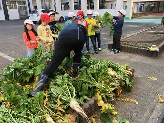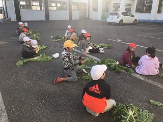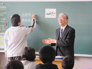 6年生租税教室 & 2年生学級花壇の大根収穫