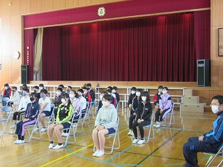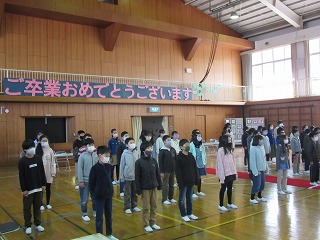 卒業式の練習の後を狙って、卒業生に歌とお祝いの言葉のプレゼント!