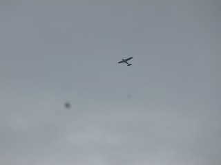 時間になって運動場に出ると、南の空をセスナが旋回しています。