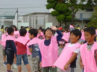 さて、下のように並んでいますが、正則小は何を描いたのでしょう?答えは、朝礼で話題にしたとおり、です。ぜひお子さんに聞いてみてください。できあがりが、楽しみです。