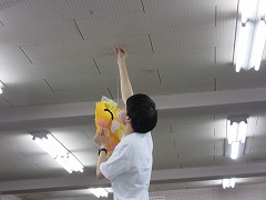 実は、今年度に結婚する(した)先生の頭上に、ぬいぐるみの鯛がつるされていたのです。結婚する先生へのお祝いに、同僚の先生たちが協力して作った手作りの鯛です。一応該当の先生には秘密で行われているのですが、若い先生が多い学校では毎年のようにつるされるので、お互いに作り合っていて薄々気づいている人も多いようです。