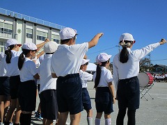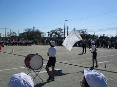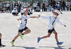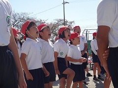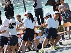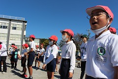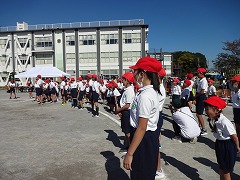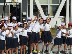 休憩後は応援合戦。高学年から低学年に引き継がれていく伝統です。