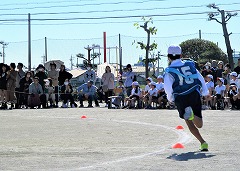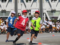 ⑤応援歌ゴーゴーゴー 全校 応援は赤白それぞれの勝負ですが、見ている人たちから見れば全校児童で作り上げているようにも見えると思います。特に、応援歌「ゴーゴーゴー!」は赤白の掛け合いの歌でもあり、3番で赤白が同時に歌うときにはハーモニーを奏でる部分もあり、一つの作品でもあります。