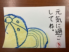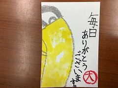 先日は、6年生が絵手紙に取り組みました。6年生は日常で使っているランドセルや帽子、通学団の団旗などを題材に、日頃登下校を見守ってくださっている見守り隊のみなさんへ向けて描きました。