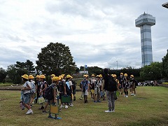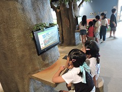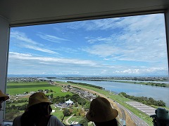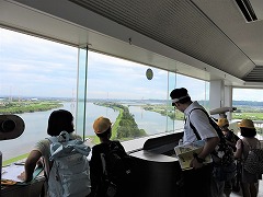 治水タワーの上にのぼり、近くの千本松原から遠くの名古屋駅前のビル群や同じ三川公園の一宮にある138タワーパークまで見えました。また、1階の施設ではいろいろな映像資料やクイズプログラムなどを体験しました。