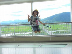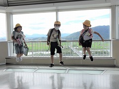 治水タワーの上にある透明な床の上で、勇気を出してジャンプしてみました。
