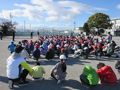 冷たい強風の中でしたが、10分弱、避難訓練を行いました。