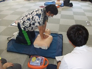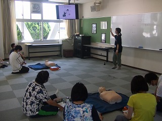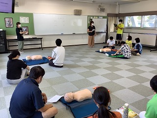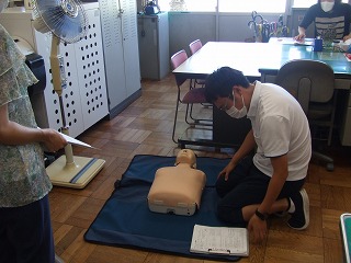 きのうの午後、子どもたちが下校してから「救命救急法講習会」を校内職員で行いました。