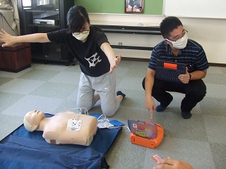 後半は、実際に職員室で人が倒れた場合を想定して行います。