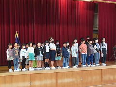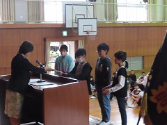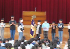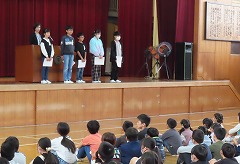 式の最後には、前期の児童会役員から反省やお礼の言葉があり、後期の役員への引き継ぎ式を行いました。