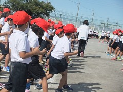 なかなか言っていることが伝わりません。しかし、運動会の歌『ゴーゴーゴー』が放送で流れ、6年生が歌に合わせておどりはじめると、みんな見よう見まねで覚えていきます。