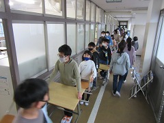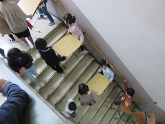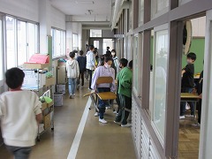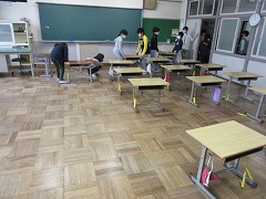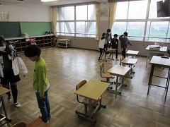 新しい学年の教室に自分たちの机やいす、学校に置いておく教科書などを移動します。