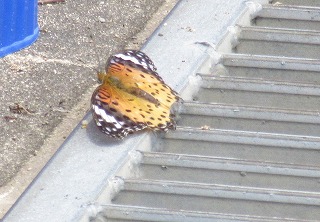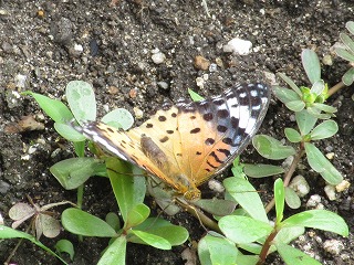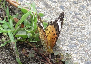 みんなが知っている蝶(ちょう)と言えば、モンシロチョウやモンキチョウ、アゲハチョウなどが有名ですが、写真の蝶も最近増えてきています。この蝶は「ツマグロヒョウモン」といいます。元々は、九州地方などこの辺りよりももっと南の地域でよく見られた蝶ですが、スミレやパンジー・ビオラなどを幼虫が食べるのと、地球温暖化で気温が上がってきている影響か、ここ2~30年で中部地方はもちろん関東から東北地方まで見られようになっているそうです。