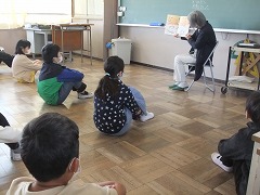 『おはなし会』は、PTA文化委員会のみなさんとボランティアのみなさんによる読み聞かせの会です。8:20ごろ、図書室に集まってもらい、それぞれのクラスに行って読み聞かせをしてもらっています。