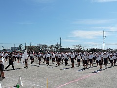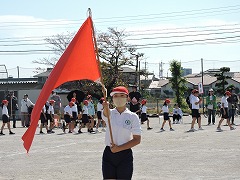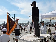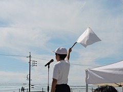 得点係の子が得点板を開けると、なんと17対10の大差で白の勝ちでした。児童会の代表が結果を発表し、校長先生から白組代表が優勝旗を受け取りました。昨年度優勝の赤組から取り返したわけです。また来年が楽しみになりましたね。