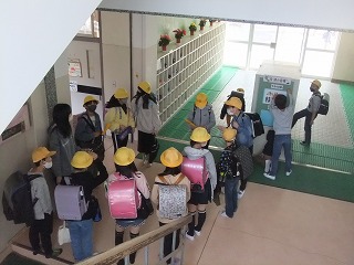 遅れた子が走って自分の下校場所へ急ぎます。待ってくれていた近くの人にだけ聞こえるように、「すいません」と一言言ってすわりました。さすが高学年です!感服しました!!!