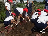 10月8日(水)に1~4年生で農業体験をしました。地域の農業委員の方々に手伝っていただきながら、自分の手でサツマイモを収獲しました。今年の紅あずまは豊作で、苗植えをしてから水やりや草取りを行い、苗の成長を見守った成果がありました。美味しいサツマイモを味わいましょう。農業委員のみなさま、本当にありがとうございました。