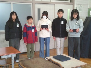 今日は、今年初の登校日。朝礼をオンラインで行いました。校長先生からは、午年にちなんだお話とクイズが出され、1~2年生の教室をのぞいてみると、正解しようと盛り上がっている様子が見られました。元気な子どもたちの姿が久しぶりに見られた、冬休み明け初日のスタートとなりました。