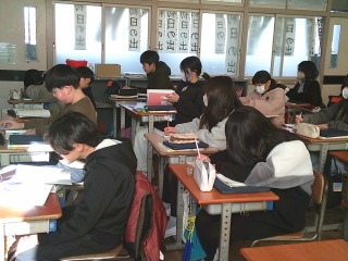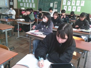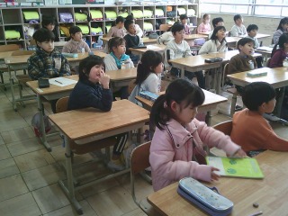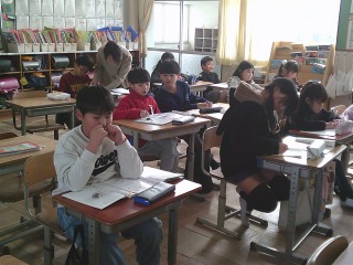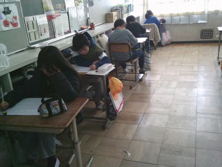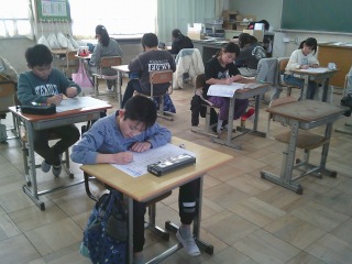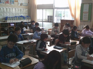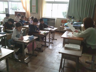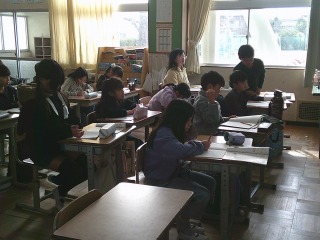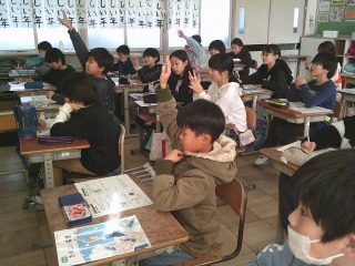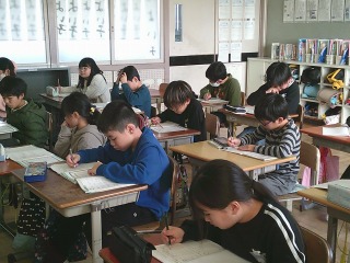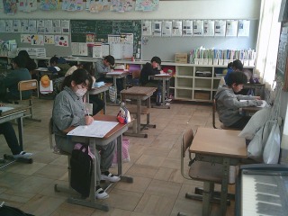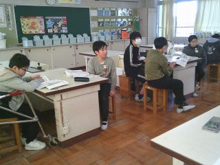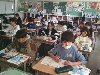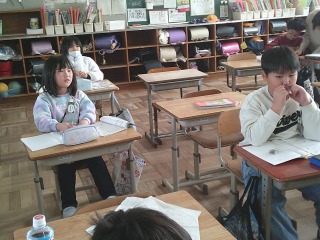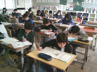 冬休みに各自で取り組んだ日誌の答え合わせをしていました。先生の解答を聞き、一人一人答え合わせをしていました。