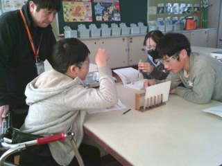 数値を表に表す学習をしていました。けがをした体の部分と、けがの種類の記録を読み取り、間違えないように気を付けながら表にまとめていました。
