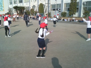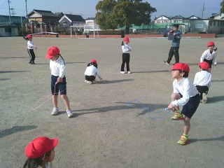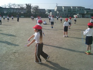 昨日より暖かい気候の中、元気になわとびに取り組みました。半袖で参加する児童もいました。今日は、あやとびに挑戦です。失敗しても何度も何度も練習していました。