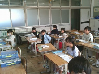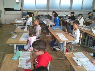 新出漢字の学習をしていました。前回の学習をしたノートをもらい、気を付けてほしいことを確認してから今日の漢字に移ります。