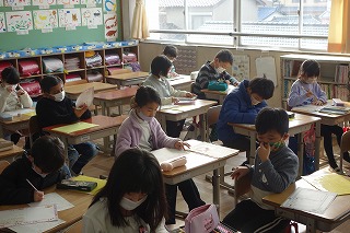 2年2組の生活科は、「自分ものがたり」に取り組みました。将来のことを考えてプリントに書きました。