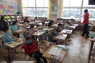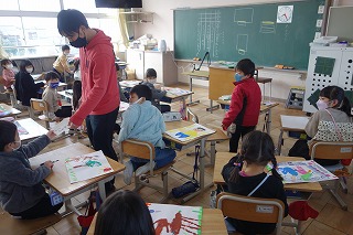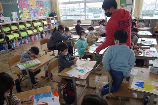 1年1組の図画工作は、作品の名札づくりをしました。えん筆で下書きしてから、ペンでなぞって仕上げました。