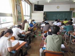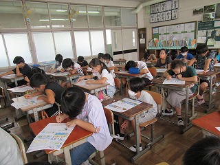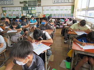 6年2組では、理科のテストが行われていました。しっかりと問題に向き合う姿が見られました。