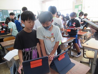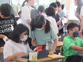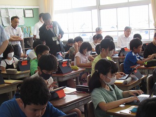 本日、大勢のお客様が美和小学校の様子を参観しにきてくださいました。5年1組では、社会科の授業を見ていただきました。