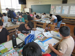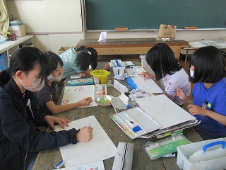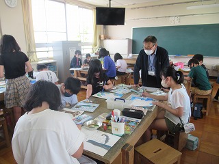 下書きで描いた線に従って、色をつける作業に入っていました。