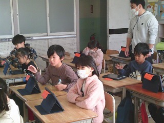 授業でよく使うアプリの設定をしていました。これから少しずつ、1年生の使用機会も増えていきます。