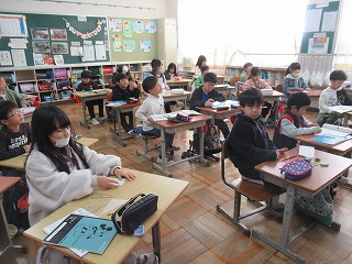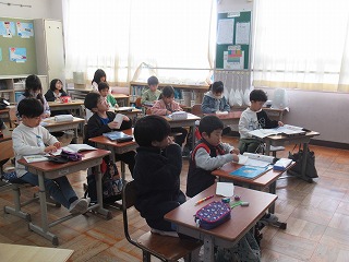 2年2組では、算数の授業が行われていました。紙を折って、直角を作っていました。
