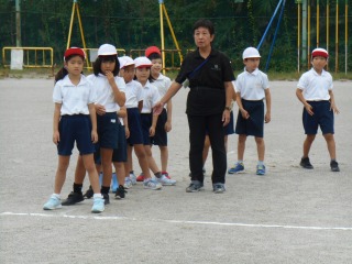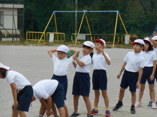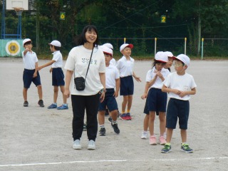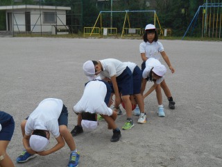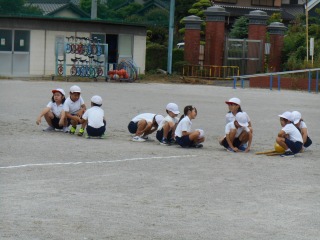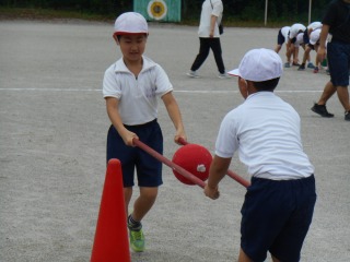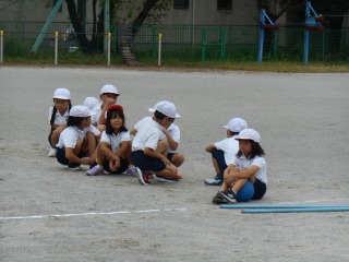 ミワリンピックの協議練習をしていました。外で行うのは初めてでした。ゴールして待っているグループの子は、競技中の子を応援していました。