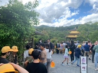 1日目の最終見学地である金閣寺に到着しました。景色もよく、金閣寺の金色が映えて見えますね。
