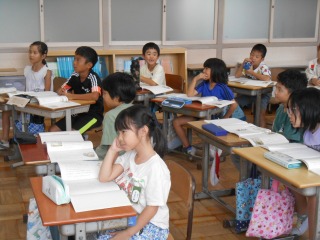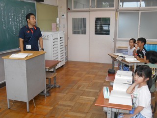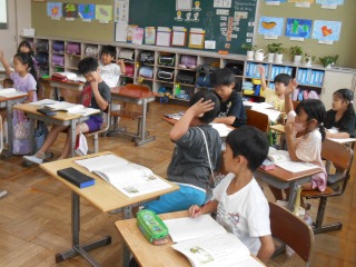 がまくんとかえるくんが登場する名作「ふたりはともだち」を使って学習していました。読んだところまでの内容や、難しい言葉の意味を確認していました。
