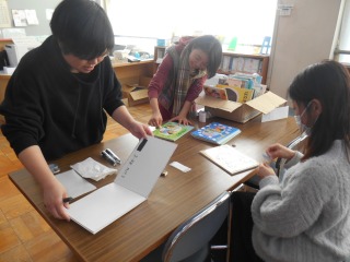 読み聞かせボランティアによる本の修繕