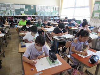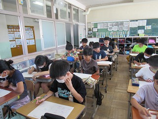 5年2組では、朝学習を行っていました。