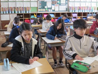 1つの文章を、より読みやすくするにはどうすればいいかを考えて文章を再度作り変える学習をしていました。こそあど言葉、句読点、つなぎ言葉などを加えたり、除いたりして書いていました。