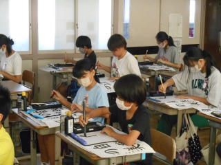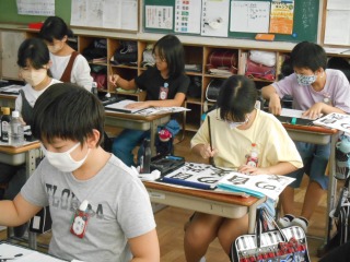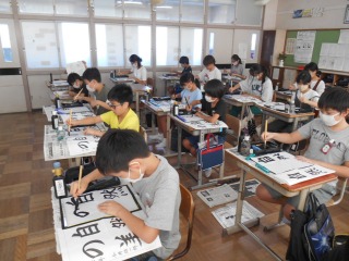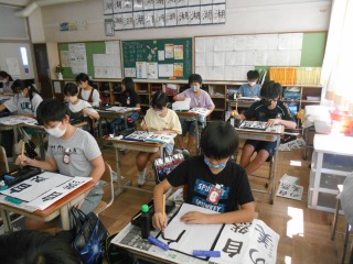 書写コンクールの課題「自然の美」を練習していました。一画一画、集中して取り組んでいました。