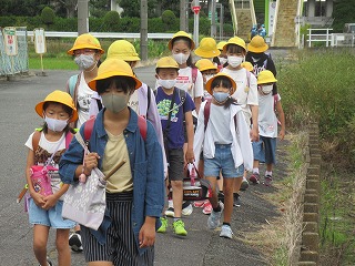 北門の通学団のようすです。今日も、歩道橋の周りや大通りに出るまでの見守りをしっかりしてくださっていました。いつもありがとうございます。