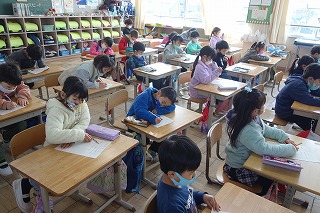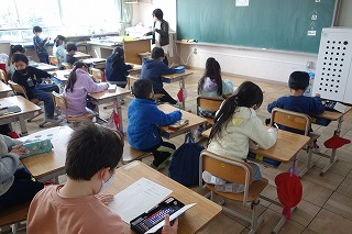 1年2組の算数は、形さがしのプリントに取り組みました。