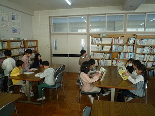 図書室で読書活動です。