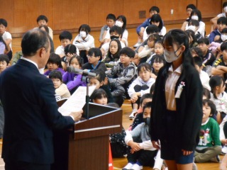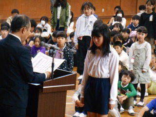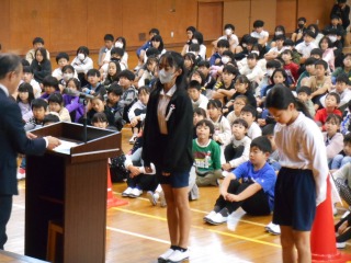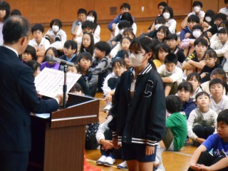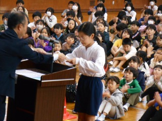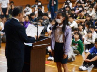 表彰では、優良児童と書写コンクールの表彰がありました。
