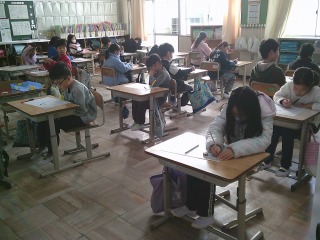 テストに取り組んでいました。まとめのテストなので、これまで学習したことを確かめながら解答していました。