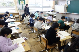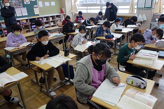 4年1組の国語は、「つながりに気をつけよう」の学習でした。みんなで文章の直し方を考えました。
