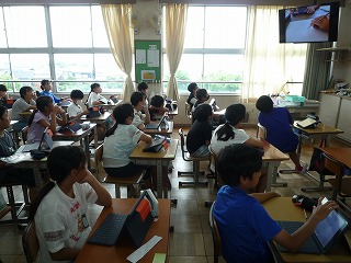 個々のタブレットから教室のモニターに映し、学び合いました。